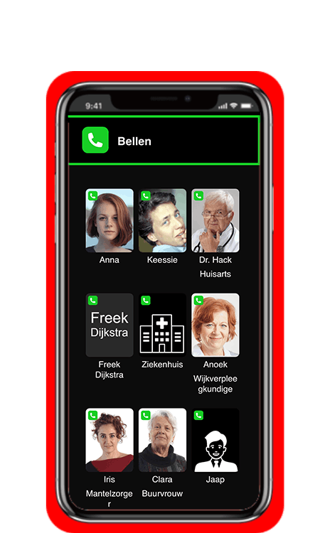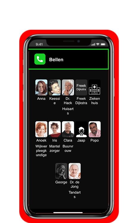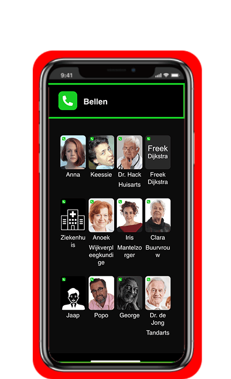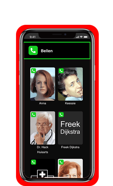 Je top 20 contacten direct in de gewenste grootte in beeld en altijd en voor iedereen* snel te vinden door de foto's.