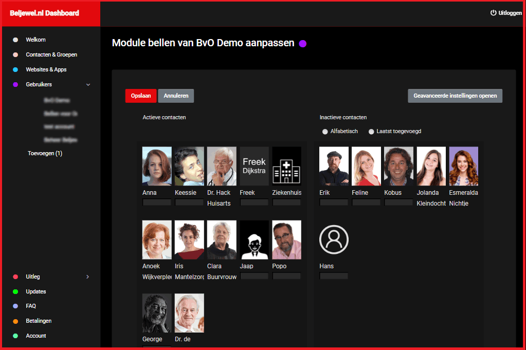Op mijn beljewel kunt u meerdere gebruikers (dus Apps) beheren en makkelijk aanpassen.