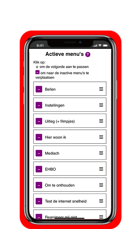 D.m.v. slepen is het makkelijk om de volgorde van de app-onderdelen in te stellen.